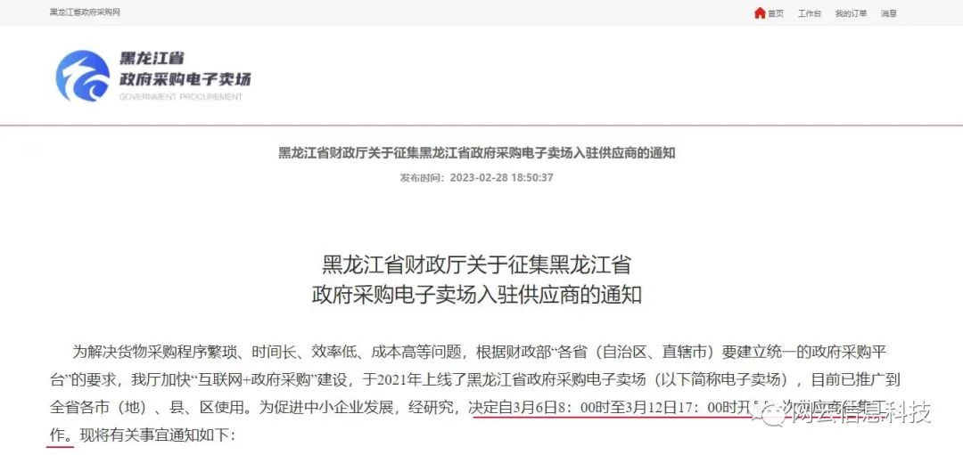 緊急通知!黑龍江政府采購(gòu)網(wǎng)電子賣場(chǎng)將于五日后開展供應(yīng)商征集工作!